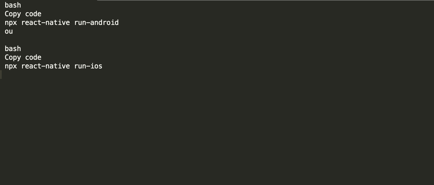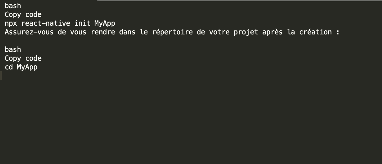 Si vous n’avez pas encore configuré un projet React Native, vous pouvez le faire en utilisant l’exemple de commande suivante :
